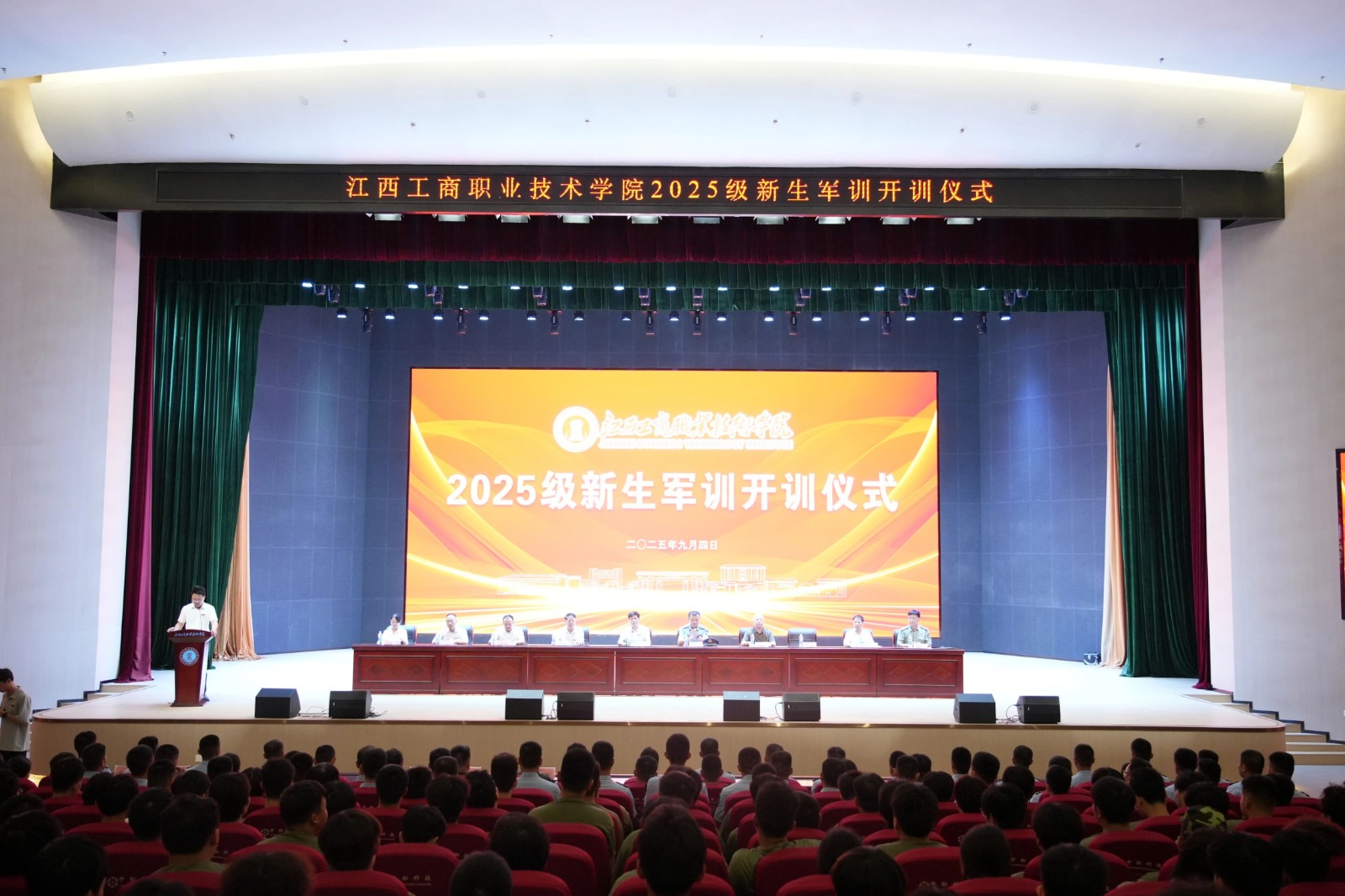9月4日,学校在学术报告厅举行2025级新生军训开训仪式。校党委书记、督导专员应露晨出席并作动员讲话。校领导、全体教官、相关职能部门负责人、各分院党支部书记,2025级新生参加仪式,校长助理谢志超主持仪式。